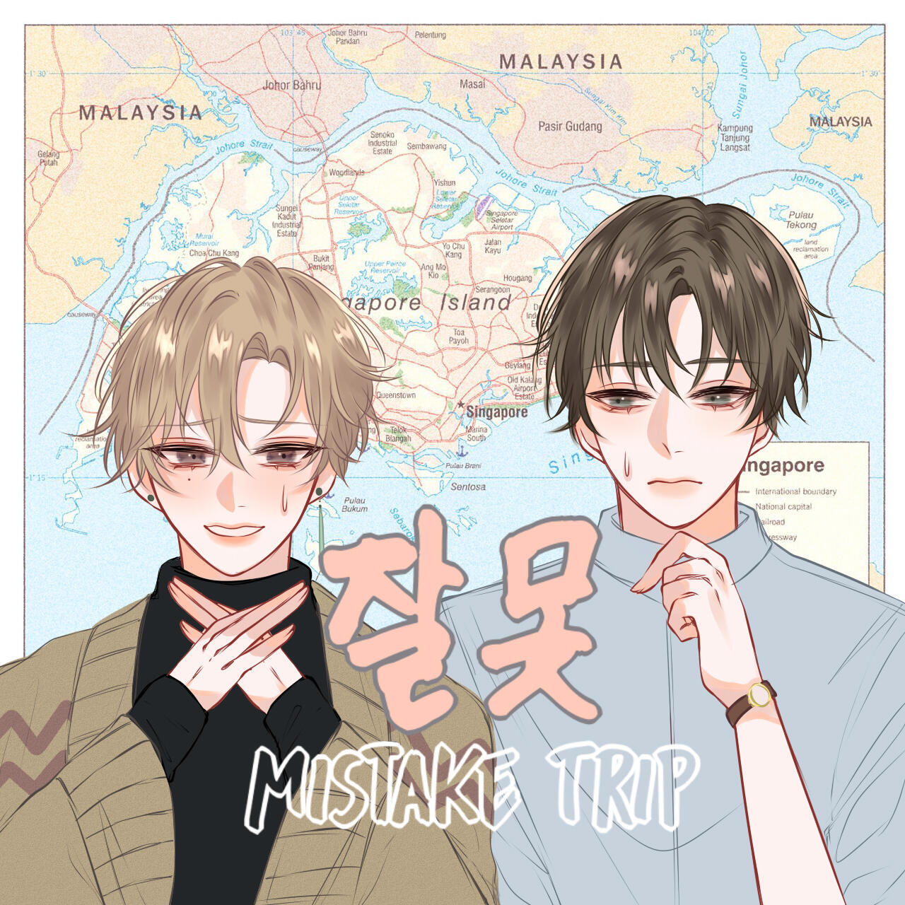 | Just two men falling hard from an accidental d*ck pic. (https://tapas.io/series/Mistake-Trip/info) |